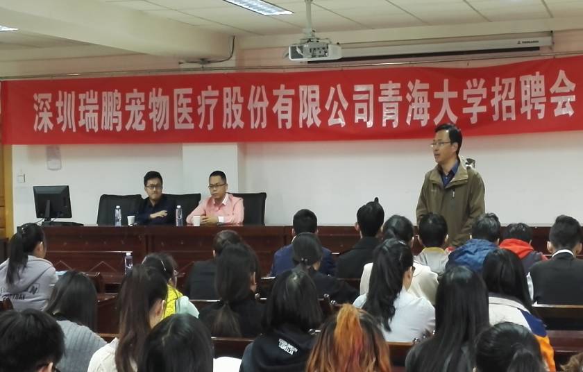 在招聘会上,深圳瑞鹏公司华东区人力资源部经理周鹏详细讲解了我国宠物诊疗行业的发展态势和就业前景,并对深圳瑞鹏公司员工的职业发展规划、薪酬等同学们关心的问题一一耐心解答。广州区经理祁生奎(我系2004届毕业生)还结合自己成长发展的工作经历,就大学生在校学习期间、毕业前、就业后应具备的素质和能力与同学们进行了相互学习交流。会场气氛热烈,同学们踊跃发言提问,争先恐后当场面试,最终有8名学生现场与深圳瑞鹏公司达成了初步就业意向。同时,亦让到会的低年级同学亲身体会到本专业的就业形势和前景,进一步巩固了专业思想。