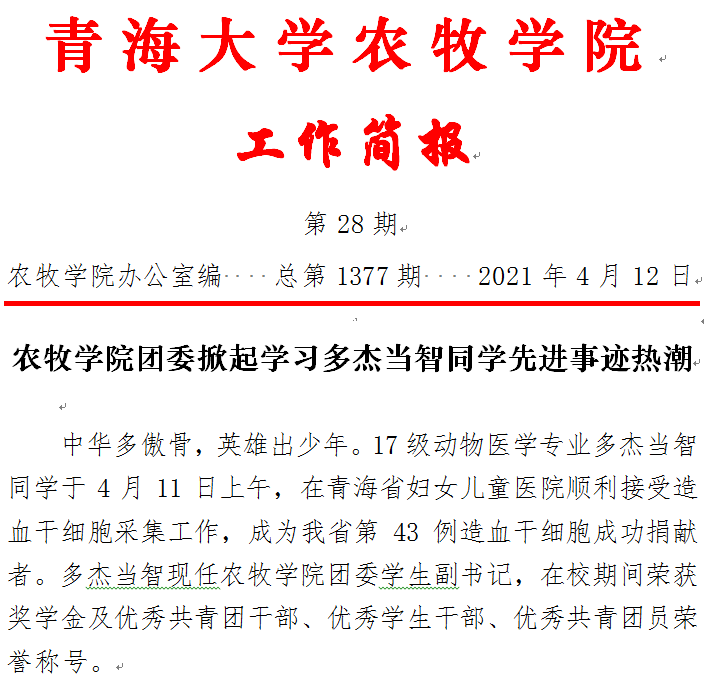 天博体育 团委掀起学习多杰当智同学先进事迹热潮