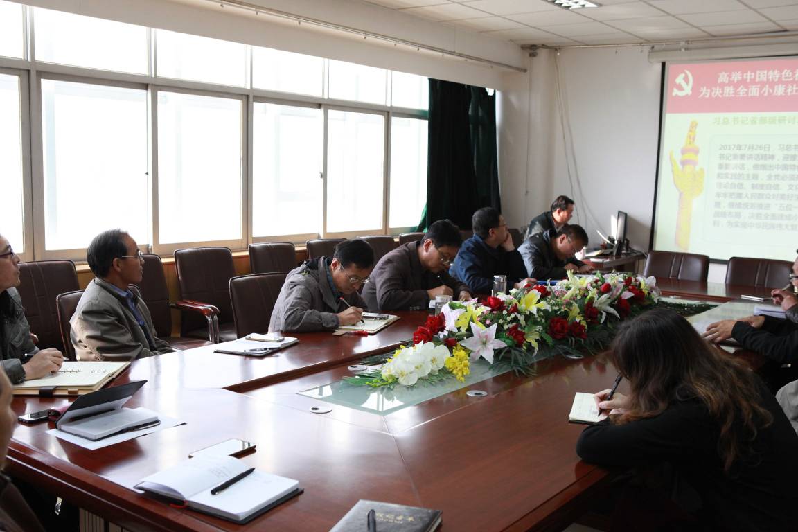10月12日上午,天博体育 在611会议室开展院中心组理论学习。院领导李宗仁、李希来、林青、祁得林以及中心组学习成员和列席人员共二十余人参加了辅导讲座,专题辅导讲座由院党委书记王永杰主持。