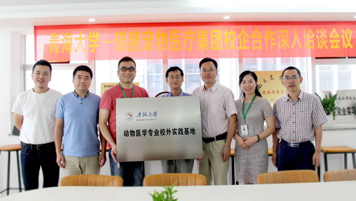 为深入推进与深圳瑞鹏宠物医疗集团股份有限公司(以下简称瑞鹏集团)校企合作“新星成长计划”特训班和共建专业实践基地的创新育人计划,2017年9月19-21日,天博体育 党委书记王永杰、动物医学系副主任康明和宁鹏教授一行三人赴广州、佛山、深圳等地的瑞鹏集团考察,并在深圳瑞鹏集团总部举行了“天博体育 动物医学专业校外实践基地”挂牌仪式,期间看望了在粤实习的动物医学系2014级(卓越兽医师)学生。