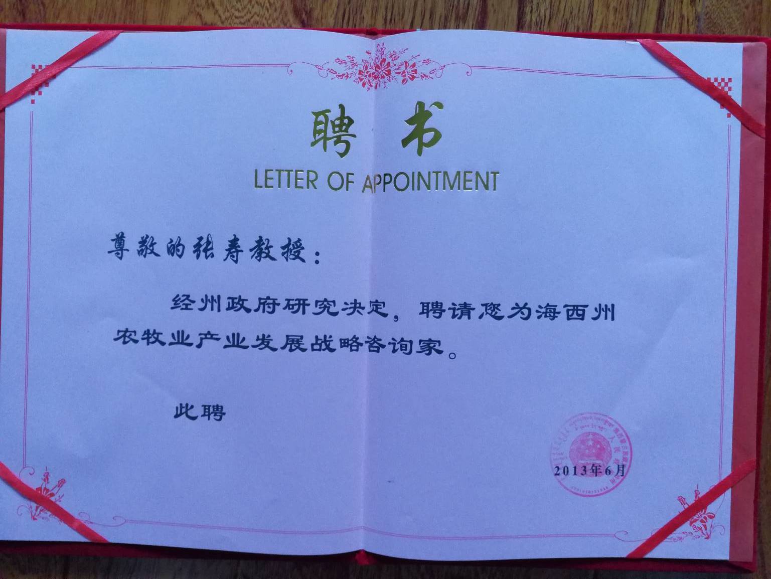 派遣动物医学系产科专家张寿教授及团队服务于柴达木盆地畜牧业生产,为海西州的畜牧业建设和发展做了大量的工作,特别是2012年以来对海西州提出的百亿元产业——柴达木肉牛产业发展发挥了重要的作用。多年来,团队通过科技咨询、科技培训、智力支持和科学研究等科技服务,为海西州培训了一大批家畜养殖、常见疾病防治等方面的畜牧兽医专业技术人员骨干和合作社养殖能手,有效的提高了专业技术人员的工作能力,转变了当地农牧民的科学养殖意识,极大的促进了当地畜牧产业的发展,深受州、县、乡各级领导和广大技术人员、农牧民的热情欢迎和一致好评。2013年6月张寿教授被海西州人民政府聘请为“海西州农牧产业发展战略咨询家”;2015年合作完成的“安格斯肉牛和牦牛杂交技术研究与推广”科技项目获得海西州科技进步三等奖;2017年合作完成的省科技厅重大专项“柴达木肉牛产业化技术集成与推广”成果达到国内领先水平。2017年10月由中国畜牧业协会主办,青海省农牧厅、青海省科技厅、天博体育