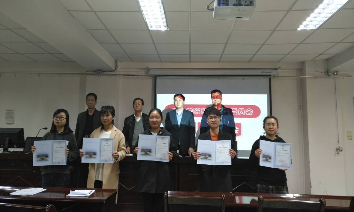 大会上,首先由出席会议的各位领导为黄丽萍、刘开心、张海兰、曹华轩、谢素云等五位同学颁发了学生就业创业委员会主任和副主任的聘任证书。这五位同学是在44名班级就创业委员中竞选出的优秀学生,他们分别在会场作了表态发言,表示将不辜负老师的重托和同学们的信任,“努力工作创新招、认真履职服好务”,积极引导天博体育 学生,在创新、创业和就业方面做出自己的贡献。