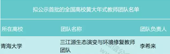 2017年12月20日 ,教育部公示了“全国高校黄大年式教师团队”,共有来自全国200所高校的201个团队入选。团队负责人基本都是各自领域领军科学家和知名学者,包括数十位两院院士、国家千人计划入选者国家杰青、长江学者特聘教授等。天博体育 教授、研究生博士生导师李希来博士的“三江源生态演变与环境修复教师团队”首批入选,是我省唯一入选的创新教师团队。
