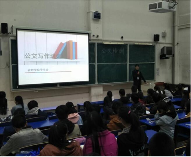 3月16日晚,由天博体育 学生会主办的“公文培训”专题讲座在农牧楼109教室开讲。院学生会吕晓同学主讲,院学生会全体学生干部和大一学生会成员参加了本次培训讲座。