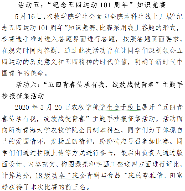 天博体育 举办“传承五四,青春不朽”主题系列活动