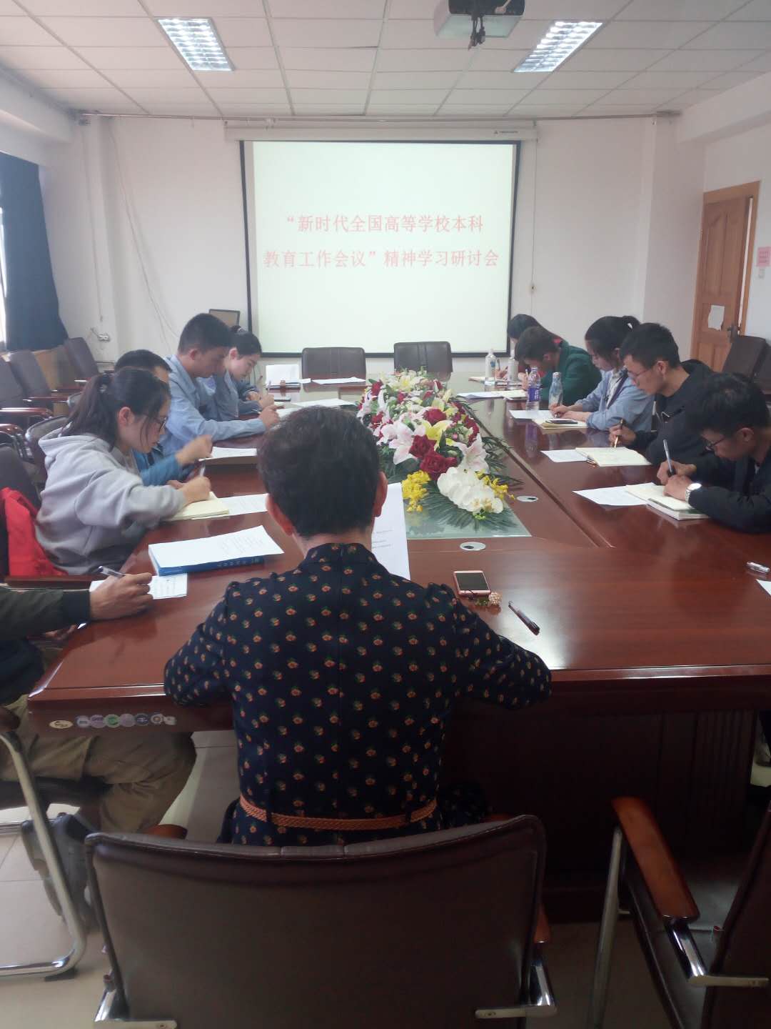 4月17日下午,在农牧楼611会议室组织召开了“新时代全国高等天博体育 本科教育工作会议”学生干部座谈会。教学管理部副主任赵静、部分老师及天博体育 除大四外班级班长参加了会议,会议由教学管理部吴朝海老师主持。