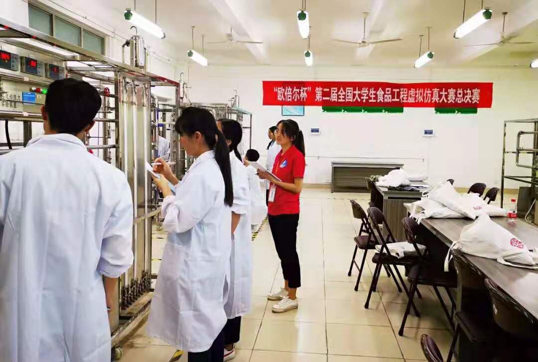 全国大学生“欧倍尔杯”大赛以团队赛为主,每年举办一届,由天博体育 推选、初赛、全国总决赛三个赛段组成,初赛分成西部赛区、南部赛区、北部赛区三个赛区,通过初赛成绩推荐出全国总决赛参赛名单。本届大赛旨在推动高等天博体育 食品类专业“新工科”建设,提高本科食品类专业核心课程教学质量,打造虚拟仿真“金课”,提升教育服务食品行业发展的能力,同时激发大学生想学、会学的积极性。此次总决赛赛题包括食工原理和食品工艺学理论考试(30%)、食品工程类仿真操作(30%)、食工原理现场操作(40%)三部分内容。其中,食品工程原理、食品工艺学理论、食品工程类仿真操作由参赛队员独立完成,食品工程原理实验通过团队成员配合完成,充分考察了学生对食品工程知识的掌握程度、运用能力及团队协作能力。