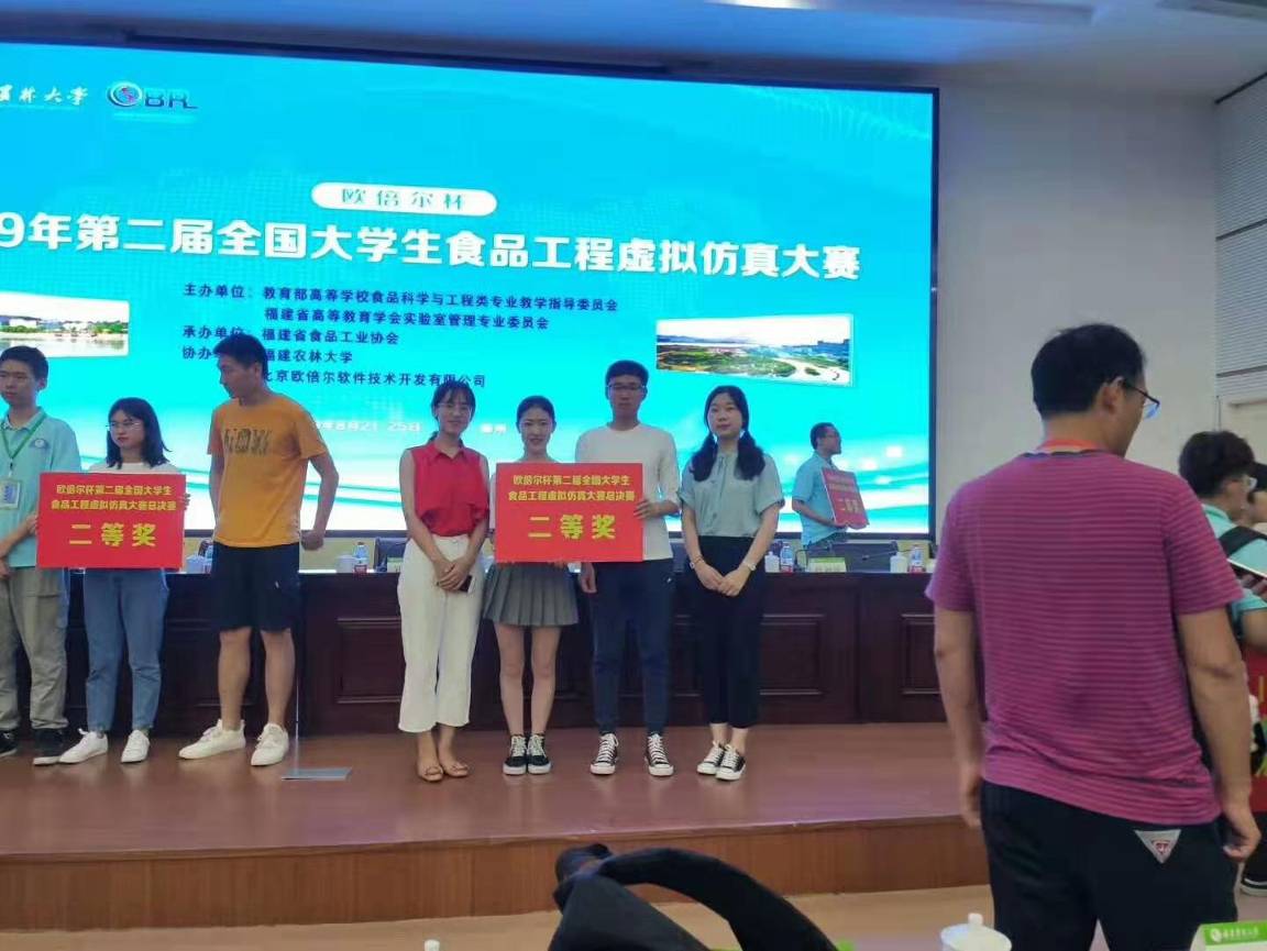 8月23日,由教育部高等天博体育 食品科学与工程类专业教学指导委员会主办和福建省高等教育学会实验室管理专业委员会主办、福建农林大学承办、北京欧倍尔软件技术开发有限公司协办的“欧倍尔杯”第二届全国大学生食品工程虚拟仿真大赛总决赛在福建农林大学隆重举行。来自中国农业大学、中国海洋大学、江南大学、西北农林科技大学等高校的45支代表队从全国130多支队伍中脱颖而出入围总决赛。天博体育 天博体育 由指导教师叶英、刘荟萃和2016级食品科学与工程专业梁欣悦、张雪、李柠同学组成的团队在初赛中发挥优秀,以西部赛区特等奖的资格顺利晋级全国总决赛,最终经过激烈角逐,获得总决赛团体二等奖的骄人战绩。
