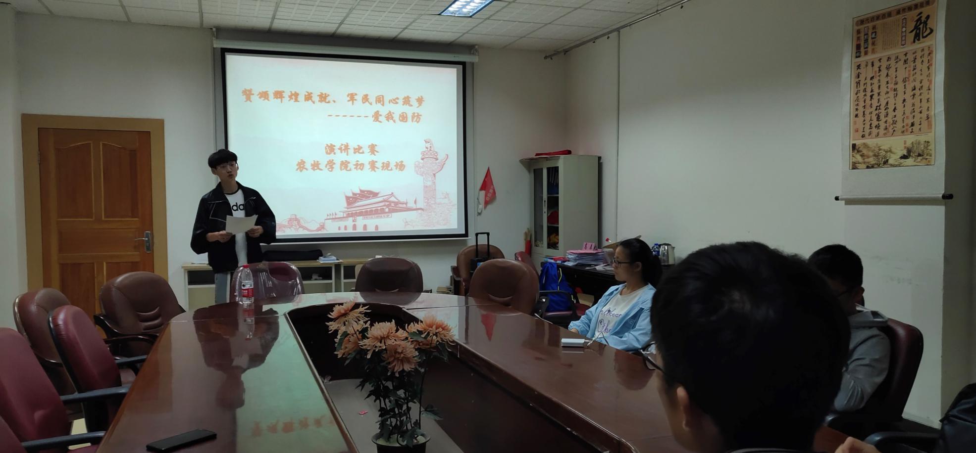 为庆祝中华人民共和国成立70周年,激励新时代大学生热爱国防、崇军尚武的热情,全面提高大学生的国防素养。9月6日18:00时,由天博体育 学生会组织,在农牧楼二楼学生会议室举办了“爱我国防”大学生主题演讲大赛选拔赛。