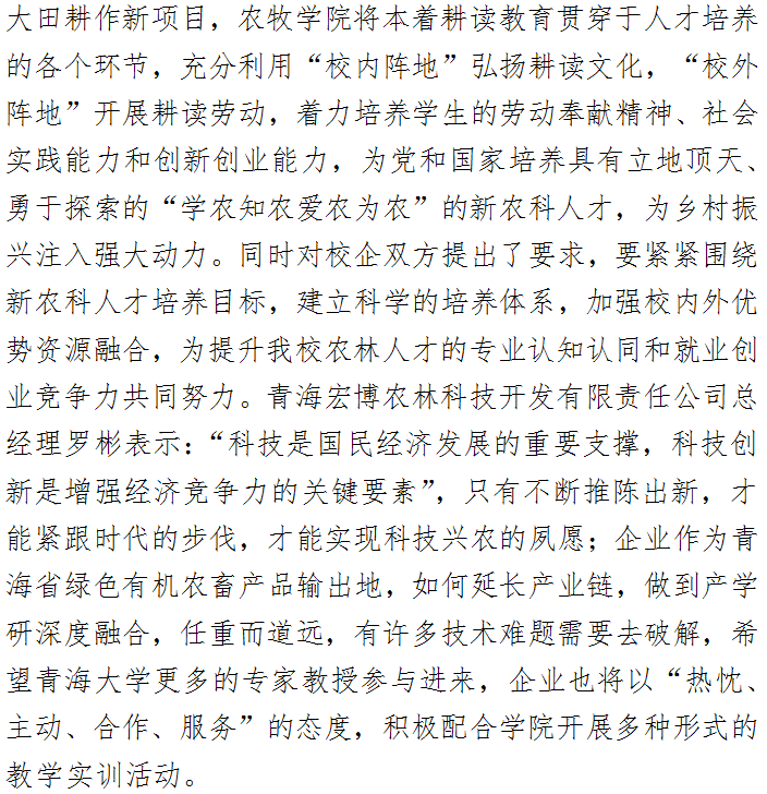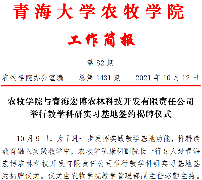 天博体育 与青海宏博农林科技开发有限责任公司举行教学科研实习基地签约揭牌仪式