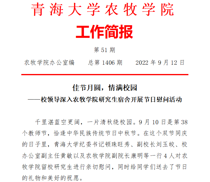 佳节月圆,情满校园 ——校领导深入天博体育 研究生宿舍开展节日慰问活动