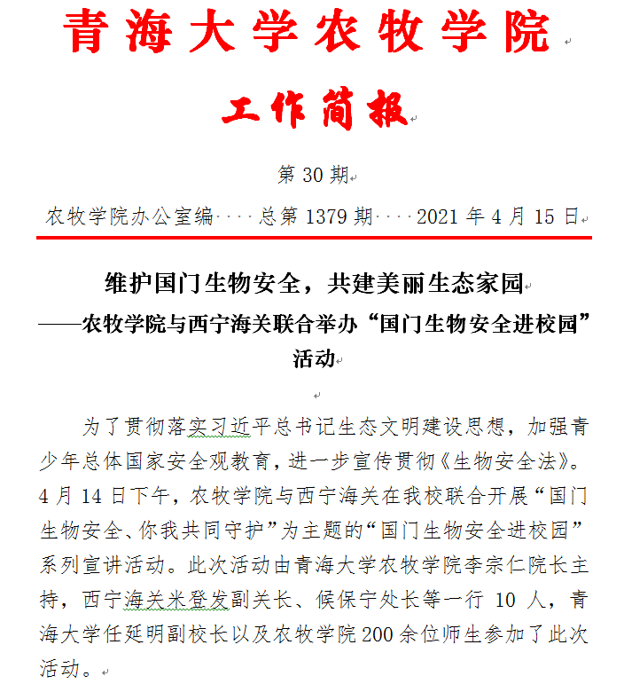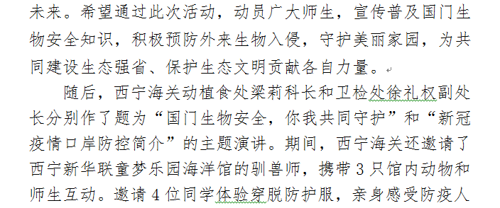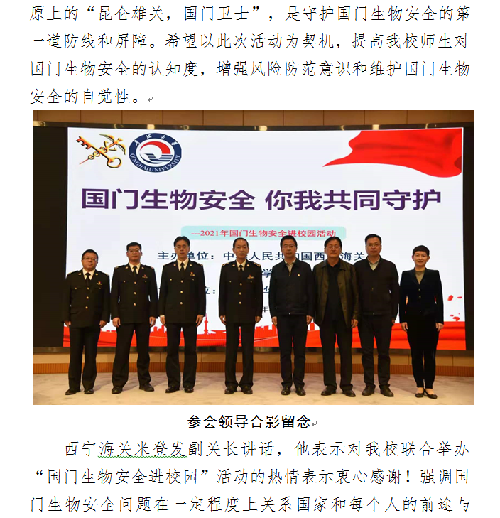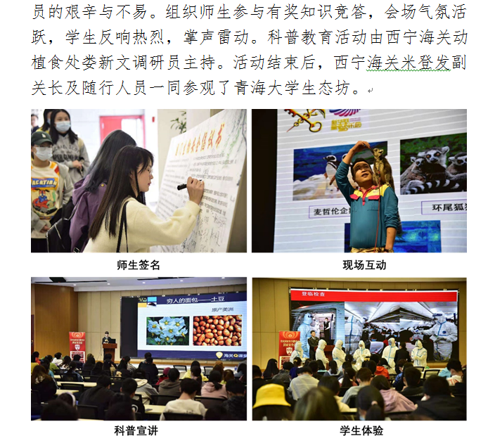 维护国门生物安全,共建美丽生态家园——天博体育 与西宁海关联合举办“国门生物安全进校园”活动