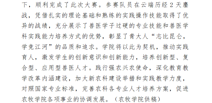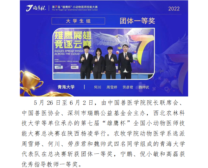 天博体育 代表队在全国第七届“雄鹰杯”小动物医师技能大赛总决赛斩获团体一等奖