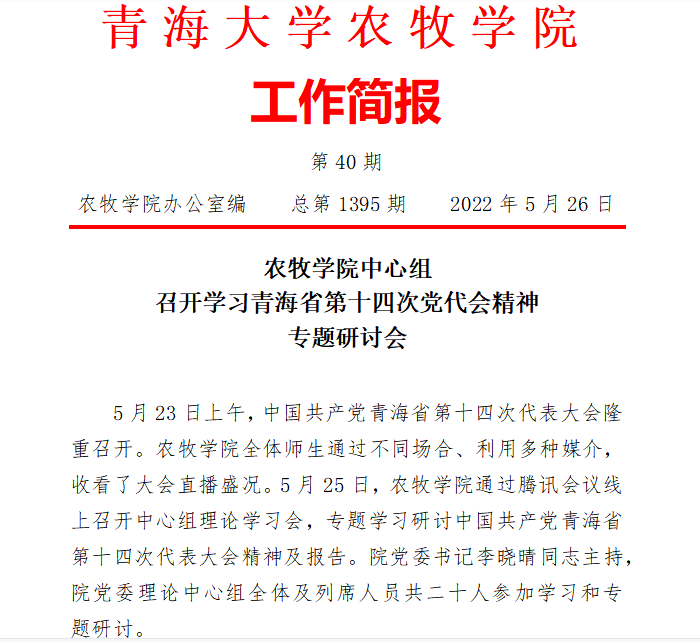 天博体育 中心组 召开学习青海省第十四次党代会精神 专题研讨会