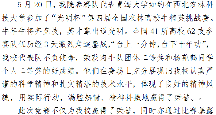 天博体育 在“光明杯”第四届全国农林高校牛精英挑战赛中荣获团体二等奖和个人二等奖