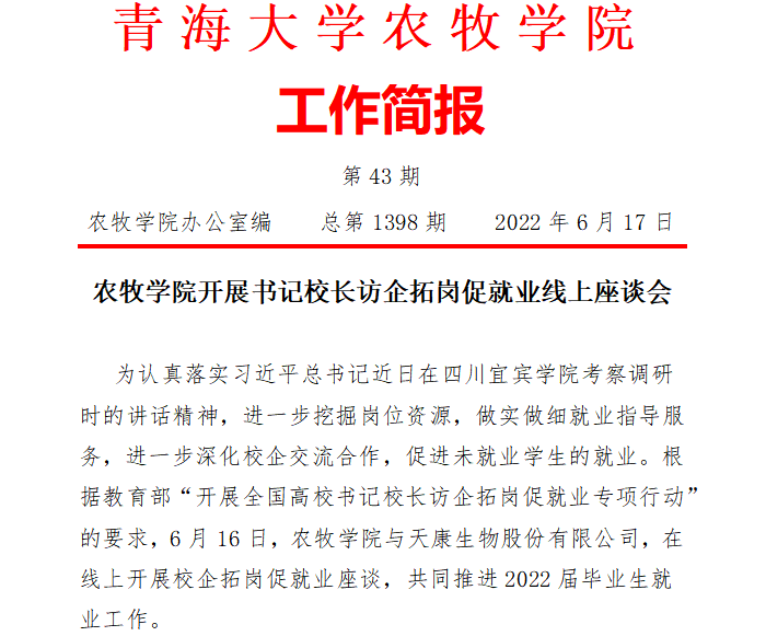 天博体育 开展书记校长访企拓岗促就业线上座谈会