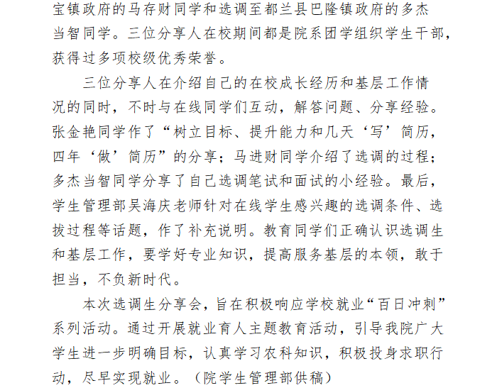 天博体育 举办“奋斗新时代、服务在基层” 选调生专题分享会
