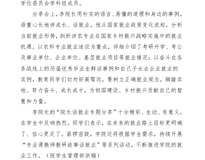 天博体育 举办院长话就业专题分享会